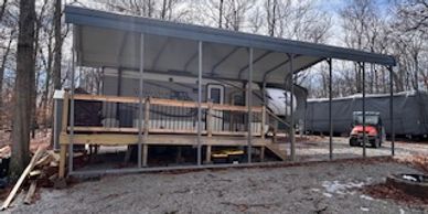 Large wooded, corner lot with both lake and river views. Camper is in nice shape.